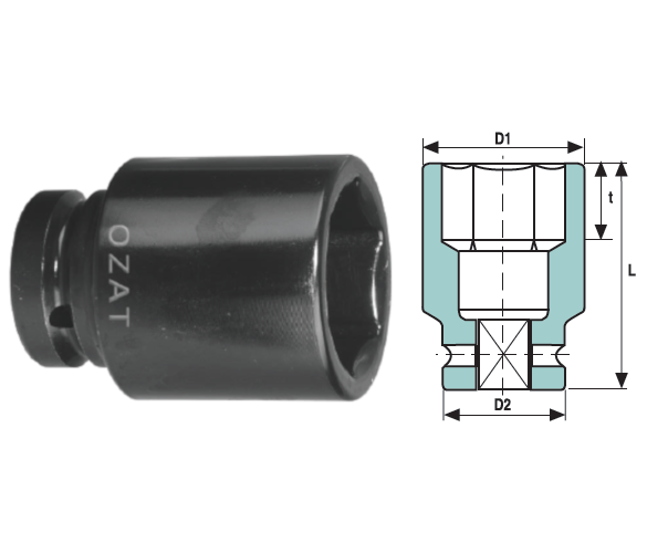 Cap cheie tubulara de impact 2.1/2" 6 laturi, lung 1 11/16"