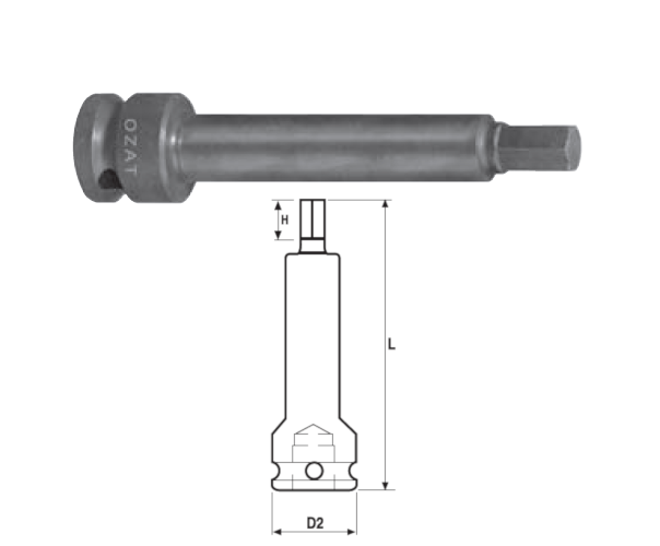 Cap cheie tubulara de impact 3/4" cu profil hexagon exterior, o piesa, lung 150 mm 13/16"