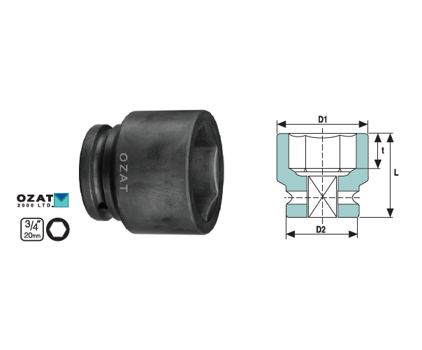 Cap cheie tubulara de impact 3/4" cu profil hexagon exterior, o piesa, standard 13/16"