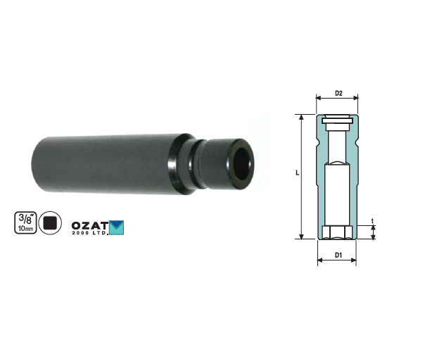 Cap cheie tubulara de impact cu nivel de vibratii scazut "LOV" 3/8", 100 mm 10, D1 16, D2 19, L 100, T MIN 12
