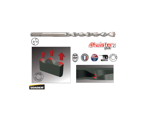 Burghie SDS-plus pentru beton Twister PLUS,DIM 10,0, LT 410, LA 350, AMB - 1