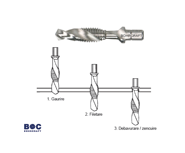 Tarod combinat cu prindere hexagonala 1/4" HSS-G pas normal M 6, PAS 1.00, GAURA 5.00